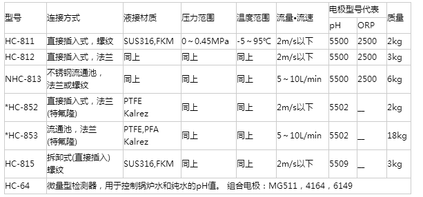 用于排水及上下水處理、排煙脫硫?鍋爐設(shè)備等一般的在線過程控制,應(yīng)用廣泛。通過連接方式和測(cè)定條件選擇合適型號(hào)